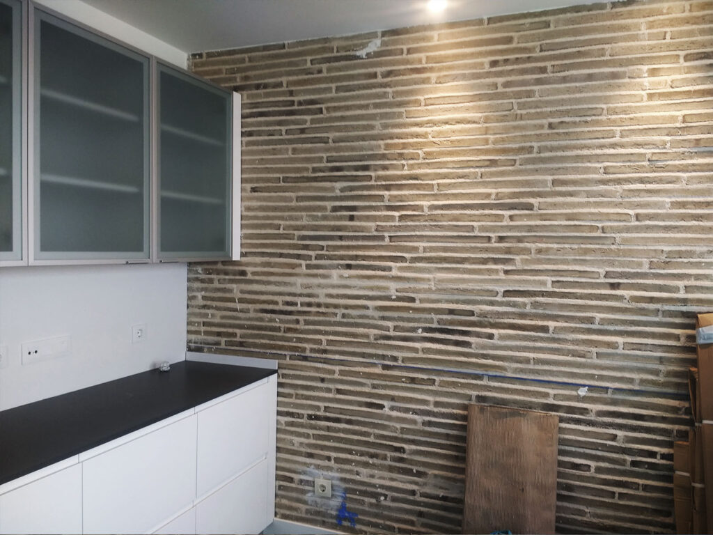 The brick has been placed on the entire facade of the building, including access stairs, gardens, etc. But it has also been placed indoors, in areas such as the living room or kitchen.